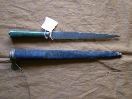 | Description / विवरण | Knife has a pointed tip with a sharp cutting edge. It has a green jade incase handle.Blue colour sheath is present. |