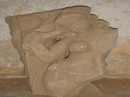 | Description / विवरण | Fragment of an independent sculpture of a yakshi, almost broken, only upper torso, head and right arm is available, left head and right arm is available, left part upto breast is chopped off. She is wearing armlet, waist band, garland necklace and earrings. She is having a decorated head gear. |