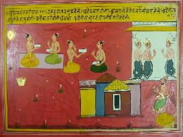 | Description / विवरण | Miniature painting based on Mahabharat - Udyam parva depicting Garuda is telling Galva about south direction where Basuki lives and Brahmans performing penance for salvation and which in not touched by the rays of sun. |