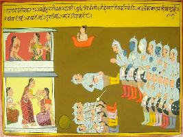 | Description / विवरण | Miniature painting based on Mahabharat - Gada parva depicting Yudhisthir saying to Duryyodhana that he will get hell in heaven. |