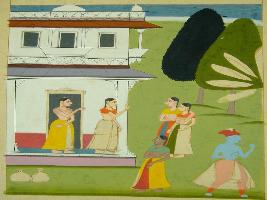 | Description / विवरण | Miniature painting based on Rasikpriya depicting Radha telling her friends about her meeting with Krishna. It is an incomplete painting. |