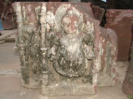 | Description / विवरण | It is a sculpture of four armed vamana, one of the ten incarnation of Vishnu, shown holding his attributes in varada posture, without lotus, flanked by male and female attendant. |