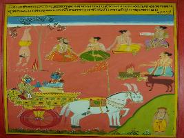| Description / विवरण | Miniature painting based on Shri Bhagwat Gita. It depicts that by doing penance, yagna and other great deeds, one become intellect and got moksha. |