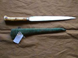 | Description / विवरण | It is a small weapon known as Chhuri knife . It has a pointed tip with a sharp cutting edge. It has a bone plated encase handle. |