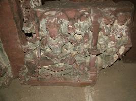 | Description / विवरण | It is a scultprue of Yog Narayan shown in padamasana on a lotus, in dhyanic posture holding his attributes followed by samkha and chakra prusha and flying celestial Vidyadhar and Maladhar on top. |
