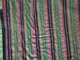 | Description / विवरण | It is a silk piece of cloth in a rectangular shape with different stripes in different colours. It has been divided into different sections. Alternate pattern of red, green, yellow and black colour borders. |