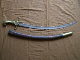 | Description / विवरण | It is a Iranian or Persian sword with a single curved edge. It is fixed with a lion headed decorated hilt.Qillons Barchak is long and facing in opposite directions. Wodden swcabbard is covered with leather. |
