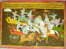 | Description / विवरण | Miniature painting based on Harivansha depicting the fight between Jarasandha and Krishna. The writing mentions that later Chakrasan came for fight and Balram defeated him. |