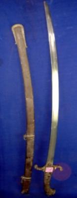 | Description / विवरण | Iron Kirch Sword having slightly curved blade and brass hilt in the shape of lion head. The scabbard is also made of brass. |