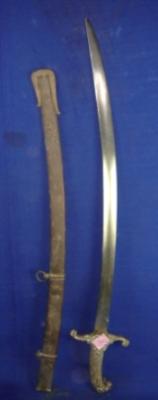 | Description / विवरण | Iron Kirch Sword having slightly curved blade and brass hilt in the shape of lion head. The scabbard is also made of brass. |