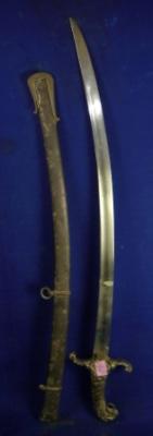 | Description / विवरण | Iron Kirch Sword having slightly curved blade and brass hilt in the shape of lion head. The scabbard is also made of brass. |