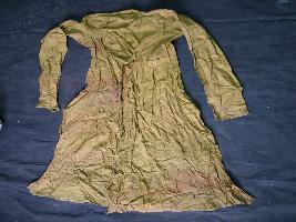 | Description / विवरण | It is angrakhi of cotton in faded green colour. Three strings are present on upper part of angrakhi. It is partially damaged. Red spots on some spaces. |