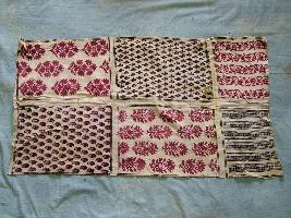 | Description / विवरण | This is a rectangular piece of cloth, divided into six rectangular compartments. All rectangular part has different floral designs in booti work. Floral designs in black and red colour on cream colour ground. |
