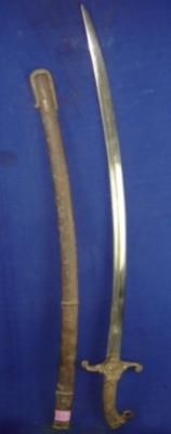 | Description / विवरण | Iron Kirch Sword having slightly curved blade and brass hilt in the shape of lion head. The scabbard is also made of brass. |