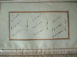 | Description / विवरण | It is handwritten is Persian language of Nastaliq style by Aga Mirza in 1835 A.D. It gives the details that An educated person is very kind hearted for poor . This text is written in black ink on light orange ground with in red, brown and golden colour lining border. |