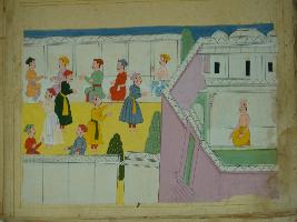 | Description / विवरण | An incomplete painting of a royal court where eleven nobles are seen while the king probably is sitting in another palace. |