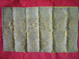 | Description / विवरण | Yellow parcha traditionally called jhappani gulab ka phul ki buntidar, rupahri kam work ka . Silver designs on a yellow ground. |