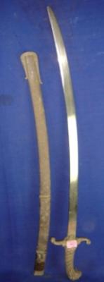 | Description / विवरण | Iron Kirch Sword having slightly curved blade and brass hilt in the shape of lion head. The scabbard is also made of brass. |