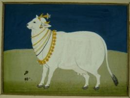 | Description / विवरण | Miniature painting depicting Maha Raas Lila scenes. It depicts a cow in standing position decorated with jewels. |