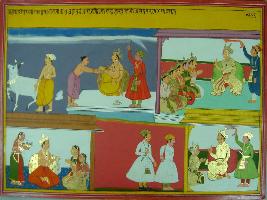 | Description / विवरण | Miniature painting based on Mahabharat - Adi parva depicting decendancy of king Yayati. |