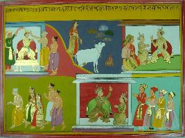 | Description / विवरण | Miniature painting based on Mahabharat - Adi parva depicting coronation of raja Yayati. king Yayati also is depicted with various kings. |