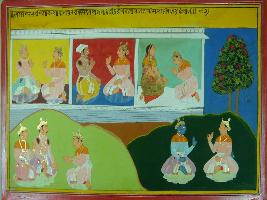 | Description / विवरण | Miniature painting based on Mahabharat - Adi parva. It depicts king Dhritrashtra and Pandavas moving towards Indraprastha and other persons like Bhishma following them. |
