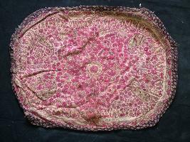 | Description / विवरण | This oval shaped table mat has silk embroidery work on cotton with floral designs. Border is in dark brown colour with floral design. Back part is in dark brown with floral design. Back part is in torn condition. DAM No. 63 30. |