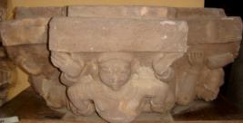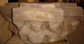 | Description / विवरण | Sculptured architectural fragment, part of a pillar depicting four handed Kichak on all four sides. Their upper two hands are lifting up the weight while lower two hands of three Kichak rest on their thighs. The lower right hand of one Kichak is holding a bowl and lower left hand catching a mouse probably . All of them are adorned with jewels. |