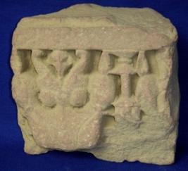 | Description / विवरण | Sculptured architectural fragment depicting a Kirti mukh which has bulging eyes and horns. The lower left corner of the fragment is chopped off. |