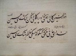 | Description / विवरण | This is a handwritten epithet in Nastaliq form, black ink is used on glory of king Shri Mahafaya Sawai Vini Singh Bahadur. |