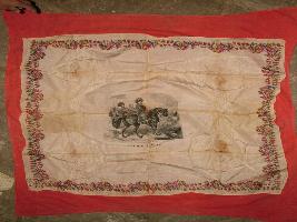 | Description / विवरण | It is a silk made handkerchief. Floral motives on the border with the royal men riding on horse in the center. |