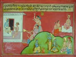 | Description / विवरण | Miniature painting based on Mahabharat depicting Krishna passing the whole night talking to Vidur and early in the morning Duryodhan coming withh Shakuni and asking him to come to the court. |