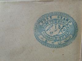 | Description / विवरण | It is a rectangular postage envelope of Afghanistan state having a bluish coloured, oval shaped stamp designed with geometrical and floral patterns. POST STAMP is written on the upper portion of the stamp. |