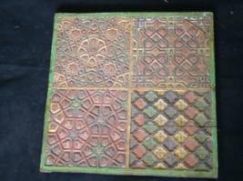 | Description / विवरण | It is a square wooden panel, lacquered and painted. It also has relief work in geometrical pattern and painted in floral designs. It is divided in four columns with different designs. |