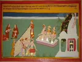 | Description / विवरण | Miniature painting based on Sanskrit drama Malti Madhav depicting natas starting the drama and says that it is the drama of Madhav, the lover of Malti. Then the sutradhara says that first Kalhans and Makarand will come to the stage after that Madhav will come. |