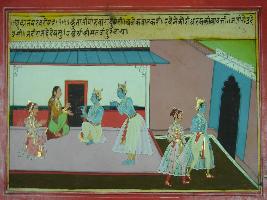 | Description / विवरण | Miniature painting based on Mahabharat depicting Kunti telling Krishna and Vidur about the sadness and problem of Pandavas. She also says that they had done some dharma for which they got the power to rule. After that Vidur and Krishna left Kunti. |