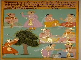 | Description / विवरण | Miniature painting based on Sarangadhar depicting about good values of mankind. On the lower right part of the painting a man is cutting a sandal tree. |