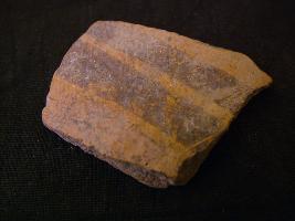| Description / विवरण | It is a thin fabric well fired potsherd. It is painted with black colour on red background. The painting design is simple band. It is associated with OCP. |