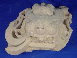 | Description / विवरण | Sculptured architectural fragment depicting a Kirtimukha having bulging eyes and teeth. |