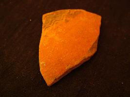 | Description / विवरण | It is well fired thin fabric red slipped potsherd. It has got black colour wavy pattern painted on red background. It is associated with OCP. |