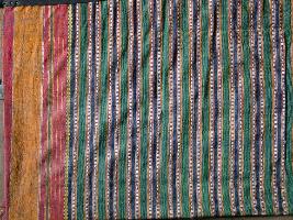 | Description / विवरण | This is a breast cloth specimen of South India. Its colours are yellow, red, green, black and white. It has lining design with red, black, green, white colour with yellow border. Its shape is rectangular. |
