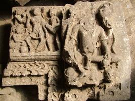 | Description / विवरण | It is a sculpture of four armed god Shiva, shown in lalitasana, on his vehicle, Nandi bull. The four armed god is shown holding trident, snake with sacred thread in body. |