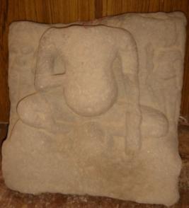 | Description / विवरण | Independent sculpture of seated and pot bellied Kuber. His right hand is on his chest and left hand is on his thigh. The head is missing and whole figure is rubbed out. To his left a standing female attendant is seen but almost rubbed out. |