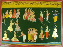 | Description / विवरण | Miniature painting based on Mahabharat - Adi parva depicting that how Indra comes in the forms of Brahman and asks Karna for the Kavach and Kundala given by Surya. He wants them to kill demon. |