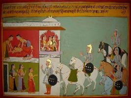 | Description / विवरण | Miniature painting based on Prithviraj Raso depicting Sanjogita become senseless by seeing Prithviraj and realising the condition of future and her friends are serving her. Then Prithviraj came along with his other soldiers and Sanjogita s friends informing Prithviraj about the health condition of Sanjogita. |
