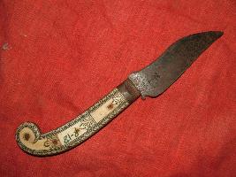 | Description / विवरण | It is a knife made from iron. It s one side is shaper, pointed from top. Hilt is made from ivory. |