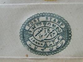 | Description / विवरण | It is a rectangular postage envelope of Afghanistan state having a dark green, oval shaped stamp designed with geometrical and floral patterns. POST STAMP is written on the upper portion of the stamp. |
