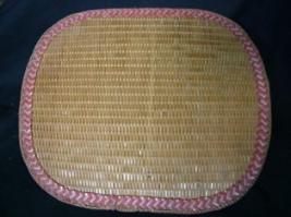 | Description / विवरण | It is an oval mat woven finely by using thin strips of cane. It might be used for covering purpose as a glass cover or as a pot base. On the backside bold strips of bamboo are used. |