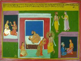 | Description / विवरण | Miniature painting based on Mahabharat - Adi parva depicting Satyavati asking Vyas to give sons to her daughter in laws Ambika and Ambalika. They gave birth to Pandu and Dhritrashtra and their maid gave birth to Vidur. |