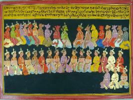 | Description / विवरण | Miniature painting based on Mahabharat - Adi parva depicting the demon king and in the lower part depicts the king Chandravati. |
